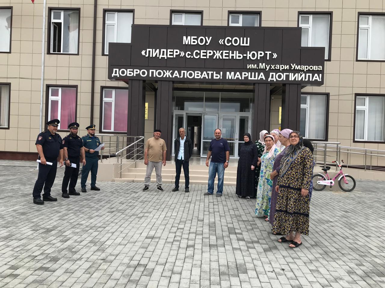 В МБОУ"СОШ "Лидер" с. Сержень-Юрт им. Мухари Умарова" 21 августа прошли учения "Действия образовательных организаций и сотрудников охраны при вооружённом нападении на территорию школы" при участии сотрудников МЧС и РОВД. Также сотрудники МЧС и РОВД провели разъяснительную беседу на тему "Действия работников школы при обнаружении подозрительного предмета". Сотрудники МЧС и РОВД высоко оценили действия работников организации. Администрация школы, в свою очередь, поблагодарила сотрудников за оказанную помощь.